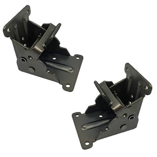 Für zusätzliche Sicherheit verfügen diese Halterungen über eine federbetätigte „positive Verriegelung“, die in geöffneter Position für Stabilität sorgt. Wenn der Tisch oder die Arbeitsfläche nicht benötigt wird, drücken Sie einfach die Verriegelung und klappen Sie sie herunter, um mehr Platz zu schaffen. -