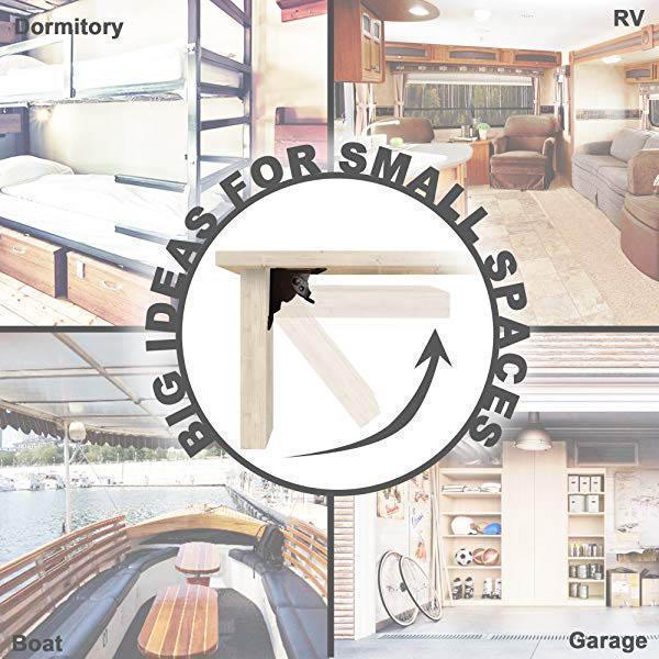 Die Stützhalterung ist ideal für Bereiche, in denen Platzbeschränkungen und/oder Flexibilität entscheidend sind, wie z. B. in Küchen, Waschküchen, Einzelhandels-/Lebensmittelgeschäften, Wohnmobilen, Booten, Lagerhallen, Industrieanlagen, Garagen, Wartungslagern, Büro-/Wohnlagern. Bringen Sie sie an Tischbeinen oder an der Oberfläche an, um die Beine von selbstgebauten Tischen oder Betten, Klappwerkbänken, herunterklappbaren Schreibtischverlängerungen usw. zusammenzuklappen. -