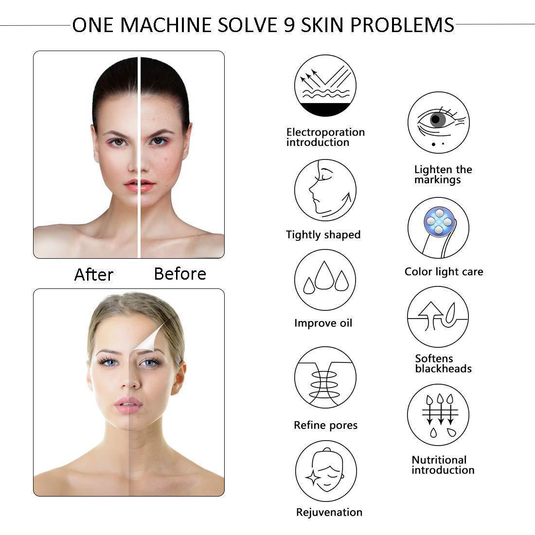 - Hautaufhellung – 5 Lichtmodi erfüllen Ihre individuellen Hautpflegebedürfnisse. Grünes und rosa Licht haben die Funktion der Hautaufhellung. Blaues Licht verkleinert die Poren.