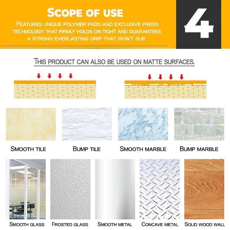 - Einzigartige Polymerpads und eine exklusive Presstechnologie garantieren einen starken, dauerhaften Griff, der nicht verrutscht.