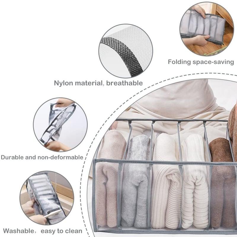✔️ Vielseitige Aufbewahrungslösung: Von Unterwäsche und Socken bis hin zu Schals, Leggings, Jeans und mehr ist unser Organizer perfekt für eine breite Palette an Kleidungsstücken. Die 7 Fächer ermöglichen Ihnen das mühelose Sortieren und Organisieren Ihrer Sachen.