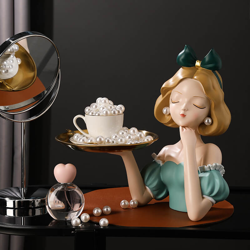 - Verschönert das Wohnambiente : Diese Prinzessinnen-Aufbewahrungsdekoration kann das Ambiente Ihres Zuhauses deutlich verbessern. Ihr einzigartiges Design und die Materialkombination vermitteln ein Gefühl von Luxus und Stil. Sie kann in verschiedenen Bereichen des Hauses, wie z. B. im Eingangsbereich, Wohnzimmer oder Schlafzimmer, platziert werden und verleiht ihm einen Hauch von Persönlichkeit und Funktionalität. Da das Ornament sowohl als Dekorationsstück als auch als Aufbewahrungslösung dient, ist es eine wertvolle Ergänzung Ihrer Wohndeko-Kollektion.