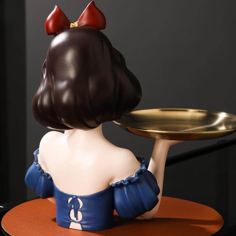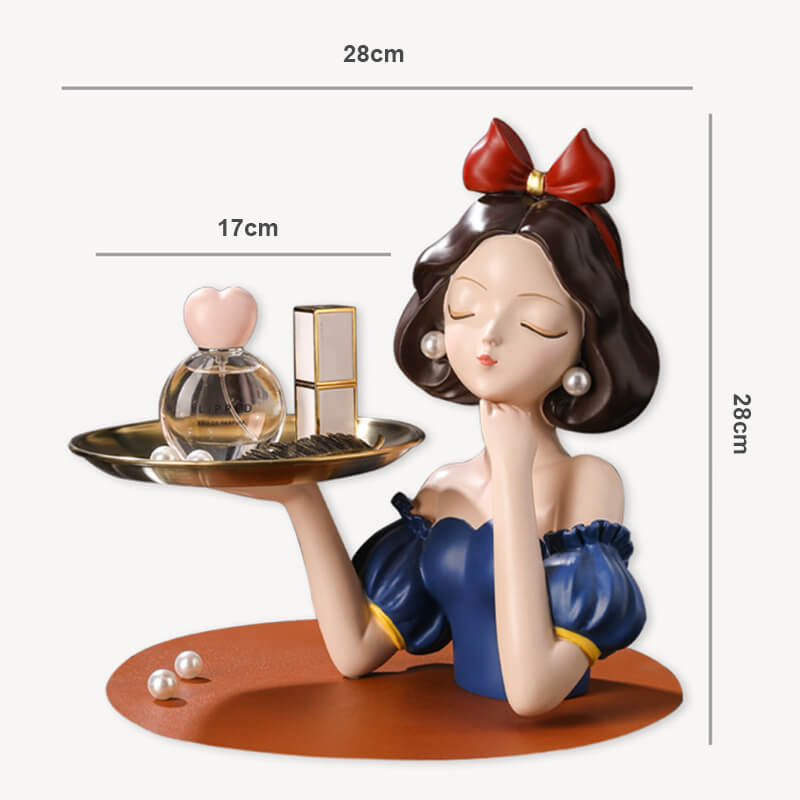 - Funktionale Aufbewahrung : Dieses Ornament dient mit dem Edelstahltablett als praktische Aufbewahrungslösung. Es eignet sich zur Aufbewahrung kleiner Gegenstände wie Schlüssel, Münzen oder anderer Schmuckstücke und ist somit eine nützliche Ergänzung für Ihr Zuhause. Die Kombination aus Prinzessinnen-Design und Ablageschale macht es zu einem einzigartigen Stück, das Schönheit und Funktionalität vereint. Das Harzmaterial sorgt für die Langlebigkeit des Ornaments, während die Edelstahlschale ihm einen Hauch von Raffinesse verleiht.