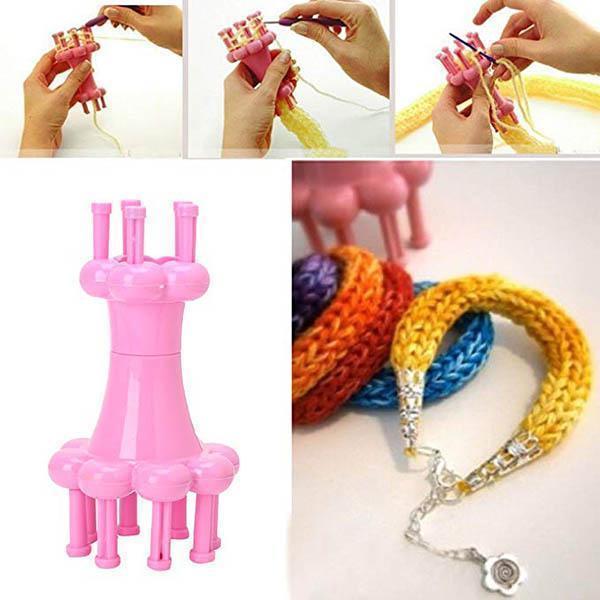 - Einfache Methode: Stricken mit einem Webstuhl und einer Häkelnadel.