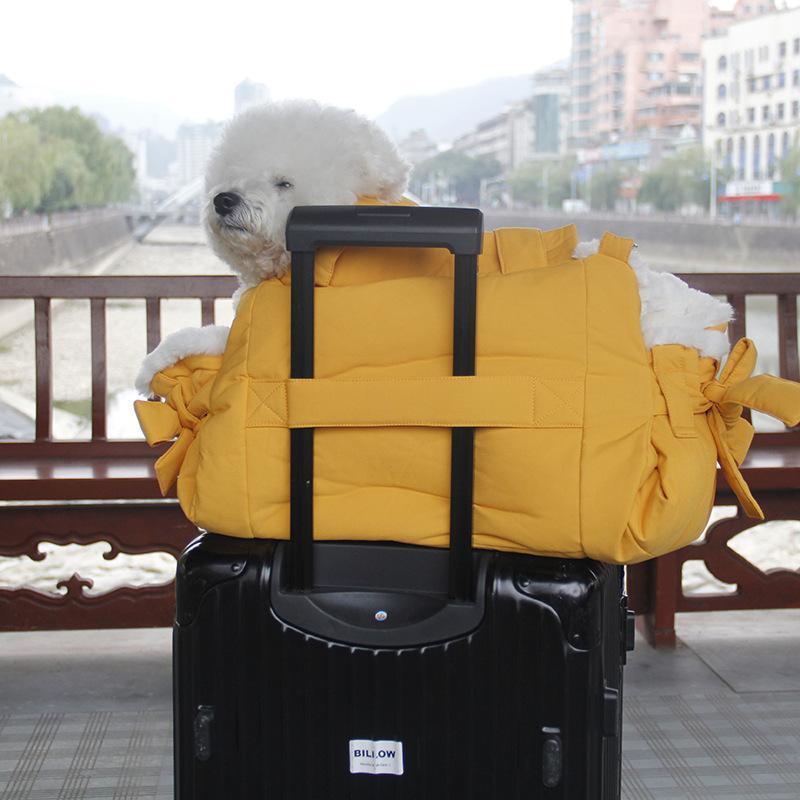 - Die Transportbox bietet Komfort, Sicherheit und Stil für unterwegs mit Ihrem Vierbeiner. Sie lässt sich einfach auf Rollgepäck befestigen. Ausgerollt dient sie als Kissen, mit einer Schleife gebunden als Tasche.