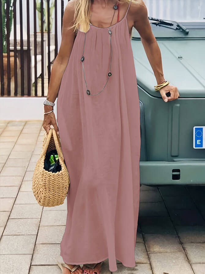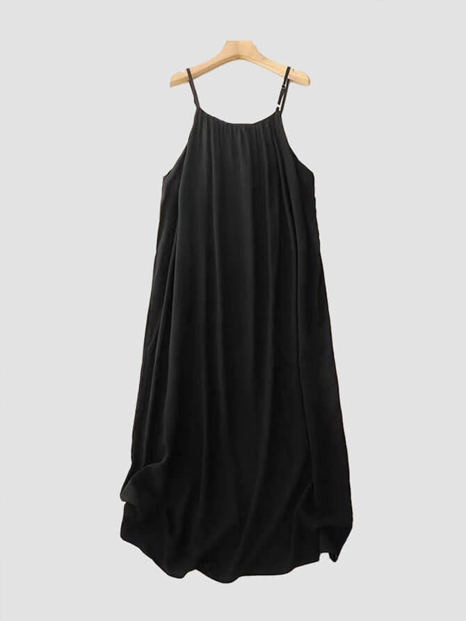 Lighteme Women's Solid Color Backless Cami Lounge Dress, Loose Fit Spaghetti Strap Dress