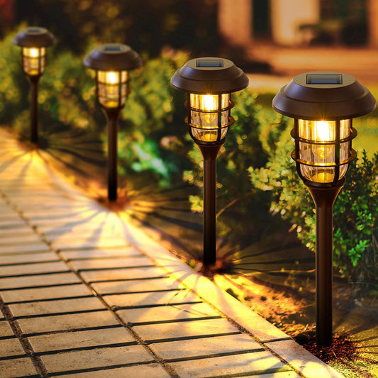 Lot de 8 ampoules LED solaires en acier craquelé pour allée