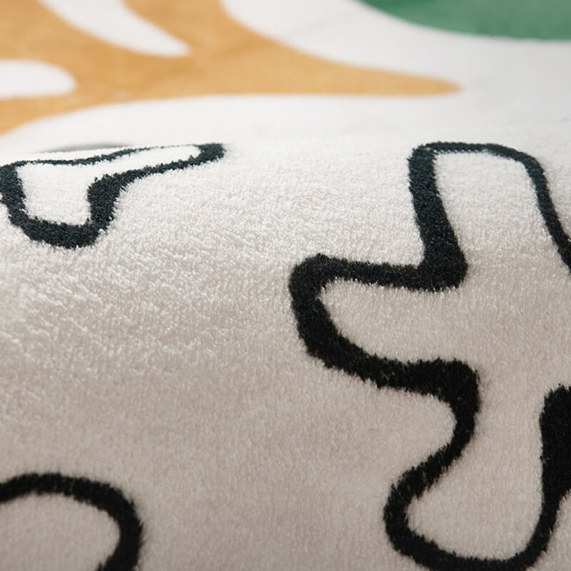 - Esthétique : La forme circulaire du tapis, associée à son motif abstrait, crée un look unique et saisissant. Les motifs abstraits, aux teintes colorées, apportent une touche moderne et artistique à n'importe quelle pièce. Qu'il soit placé dans un salon, une chambre ou un espace de travail créatif, ce tapis devient un point focal qui attire le regard et suscite la conversation. Sa forme circulaire adoucit les lignes de la pièce et apporte une sensation d'harmonie et de fluidité, tandis que les éléments abstraits ajoutent une touche de mystère et de créativité.