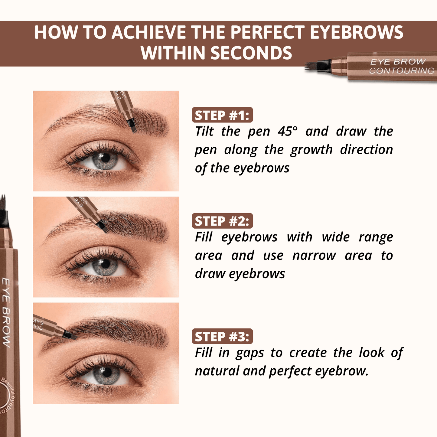 ✔ AMÉLIORATION EFFICACE DES SOURCILS : Le stylo dessine et comble en douceur les lacunes, créant des sourcils naturels, fournis et parfaits sans effort.