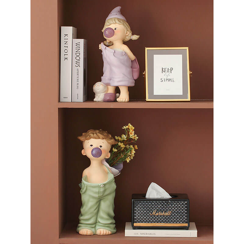 - Esthétique : Le motif du petit garçon qui fait des bulles de cette décoration en résine est sa principale caractéristique. Il apporte une touche de douceur et de fantaisie à la pièce. Le travail artisanal soigné de la figurine, associé aux bulles, crée une présentation visuellement attrayante. Placée sur un meuble TV ou une cave à vin, cette décoration attire le regard et ajoute une touche de charme à votre décoration. Elle s'intègre à différents styles de décoration, du moderne au shabby chic, ce qui en fait un ajout polyvalent à votre intérieur.