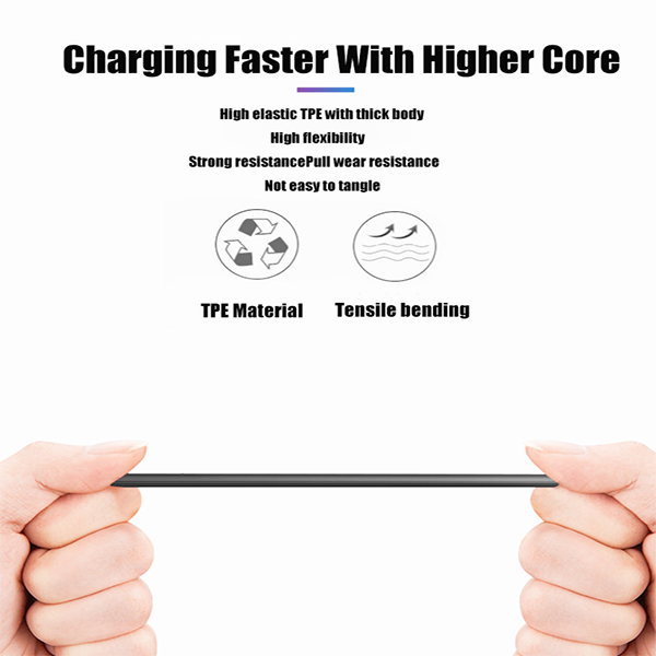 - Noyau en cuivre épais entièrement pur, résistance plus faible, charge plus rapide.