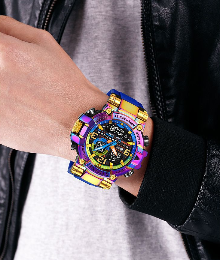 La montre tactique étanche fonctionnelle colorée TWS a été conçue pour La montre est la combinaison ultime de robustesse et de précision. Dotée d'un suivi des données lunaires et d'un graphique des marées, cette montre offre une fonctionnalité supérieure dans un cadre léger et confortable. Elle est dotée d'un compte à rebours traditionnel, d'un chronomètre, d'un calendrier et de plusieurs alarmes pour les besoins quotidiens. Ce modèle est également doté d'une résistance aux chocs et à l'eau pour les aventuriers sérieux. Pour une montre tactique extrêmement polyvalente, ne cherchez pas plus loin.