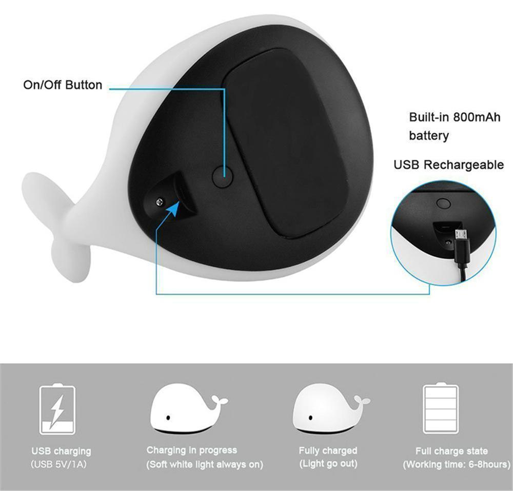 1. Chargez complètement la lampe de nuit avec le câble Micro USB avant utilisation ;