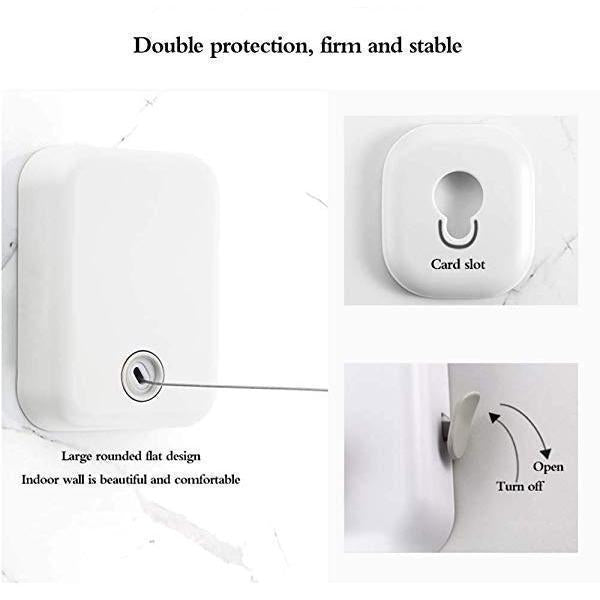 - Le séchoir rétractable automatique est doté d'un anneau de traction. Une fois utilisé, le câble en acier inoxydable se déroule et se rétracte automatiquement.