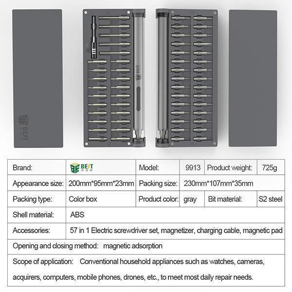 - Lot de vis électriques 57 en 1, tampon de vis magnétique *1, magnétiseur *1, ligne de charge *1