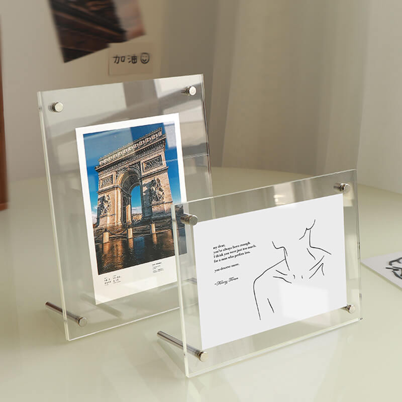 - Esthétique : L'utilisation de l'acrylique confère au cadre photo un style épuré et contemporain. Sa transparence permet de mettre en valeur la photo avec une clarté remarquable, créant un effet presque flottant qui attire le regard. La finition brillante de l'acrylique ajoute une touche de sophistication, ce qui en fait un cadre idéal pour une grande variété de styles d'intérieur, des plus modernes et minimalistes aux plus éclectiques.