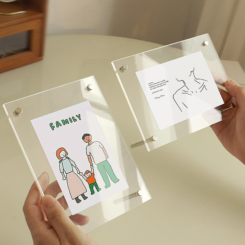 - Durabilité : L'acrylique est un matériau robuste, résistant aux fissures et à la casse, garantissant la longévité du cadre. Malgré sa légèreté, il résiste aux manipulations régulières et aux chocs mineurs, offrant ainsi un abri sûr à vos photos. De plus, l'acrylique est moins sujet au jaunissement que d'autres matériaux, préservant ainsi l'aspect impeccable du cadre pendant des années.