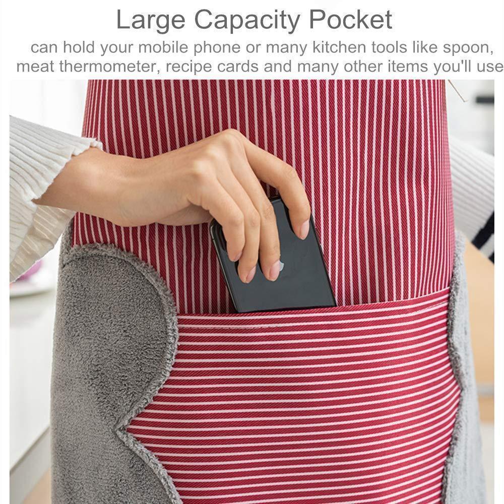 - Poche de grande capacité : la poche avant spacieuse du tablier vous offre un endroit pour ranger votre téléphone portable ou de nombreux ustensiles de cuisine comme une cuillère, des sachets d'assaisonnement, un thermomètre à viande, etc. afin que vous puissiez les utiliser à tout moment.