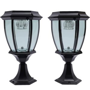 Lighteme LED Solar Fence Cap Lights.Dusk to Dawn Vintage Street Lights. 300LM. 2700K.Cast Aluminum