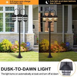 Lighteme 74.8 Outdoor Lamp Post Lights Solar Powered.3-Head Waterproof Street Lights 60 lumens