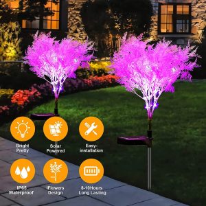2-Pack – Lighteme Solar Flowers Pink Rime Flower Design. Solar Powered Flowers Light Dusk to Dawn