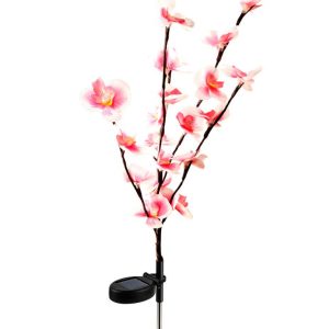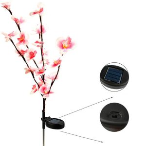 - Included: 2 solar flower lights. 2 ground spikes