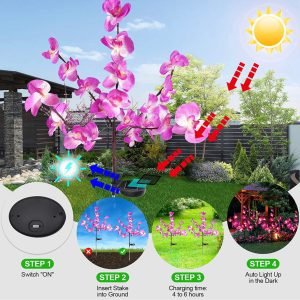 These solar orchid lights combine upgraded performance. customizable design. and weather resistance. offering a maintenance-free solution to brighten your outdoor world with natural beauty—powered entirely by the sun.