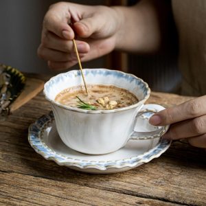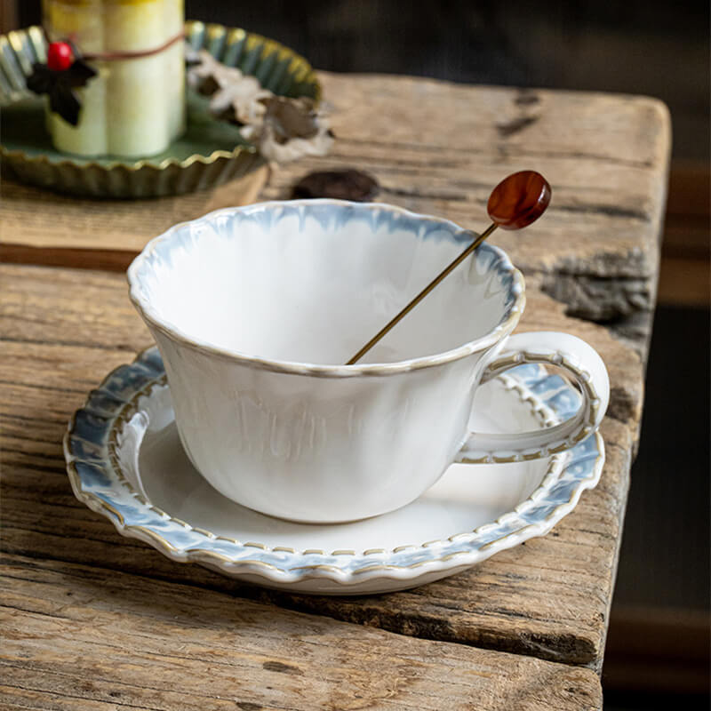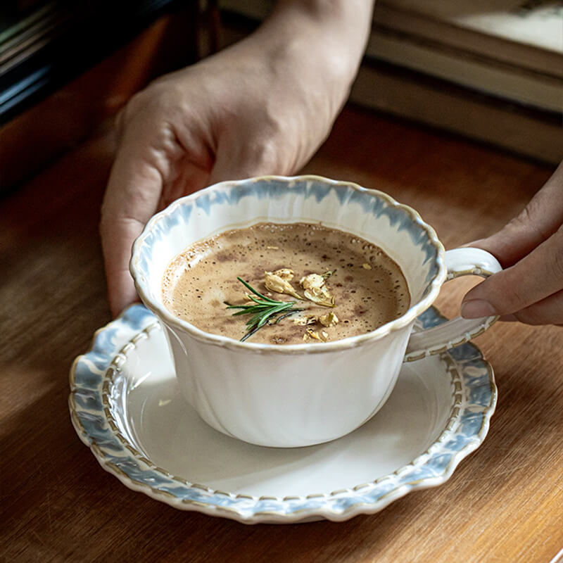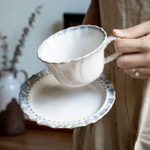 High-End Embossed Detailing: Delicate raised patterns grace the cup and saucer. offering tactile sophistication and a vintage-inspired charm that catches the light and the eye.