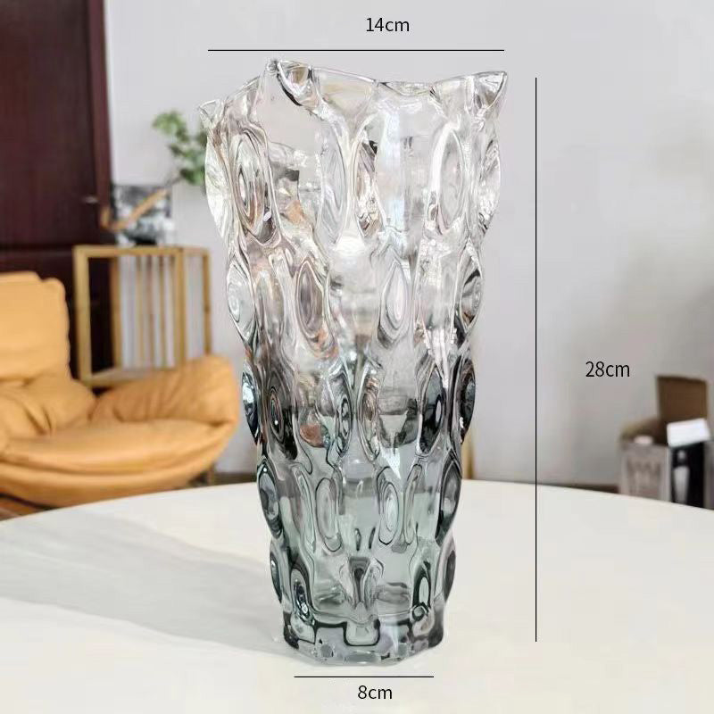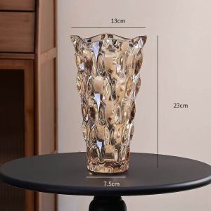 The Lighteme Bohemian Glass Vase is a stunning decor piece that combines light luxury with creative design. Made from glass. it comes in two sizes (S: 13724CM. L: 148.529.5CM) and a variety of colors including amber. champagne. transparent. colorful. gradient gray. and smoke gray. Ideal for hotel flower arrangements or as a living room decoration. this vase adds a touch of sophistication and charm to any space.