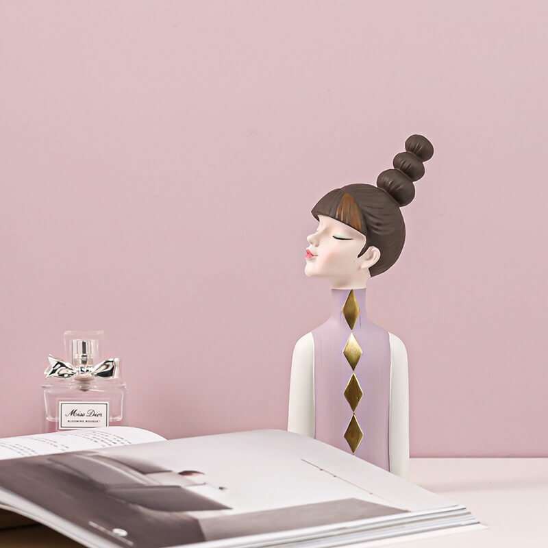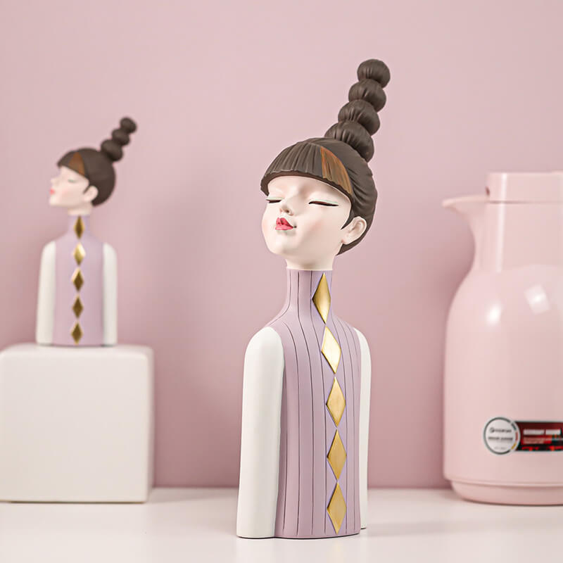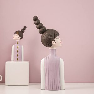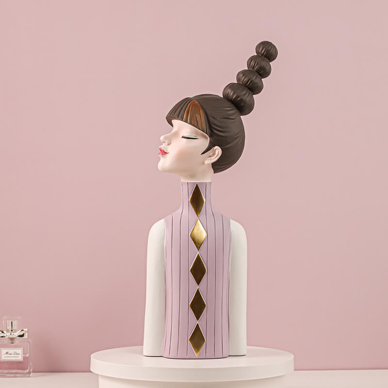 Enhance your decor with this charming resin sculpture of a girl sporting a striking sky-high braided hairstyle. Designed to add playful elegance to shelves. desks. or living areas. it seamlessly blends with modern. bohemian. or eclectic themes. serving as both a bold statement piece or understated accent.