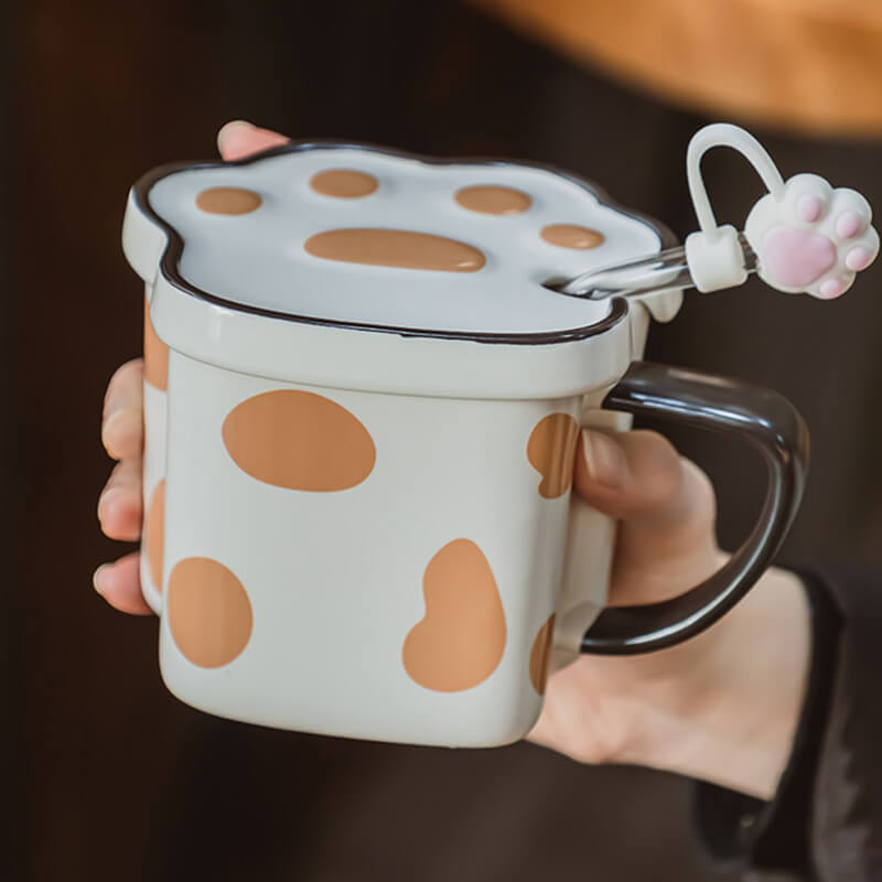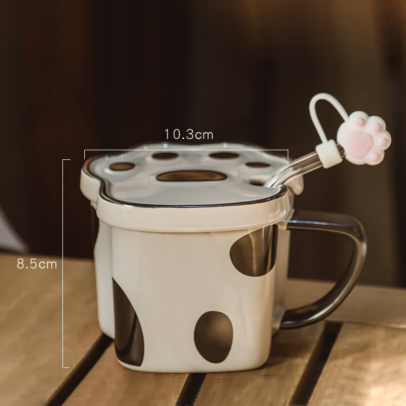 | Design | Smooth white mug with a 3D cat paw lid (pink paw pad details) that can be used as a coaster |