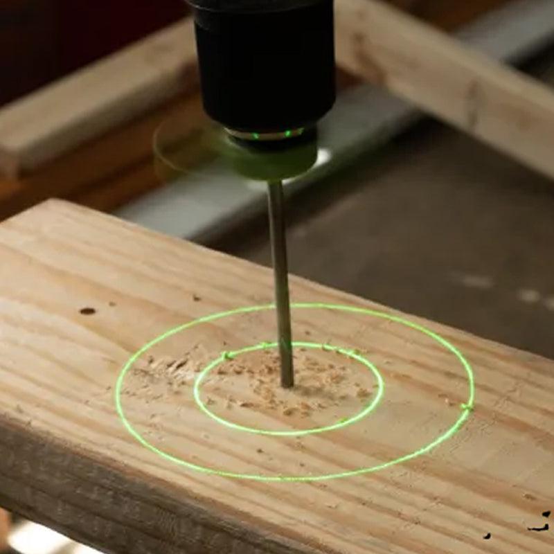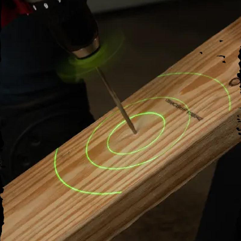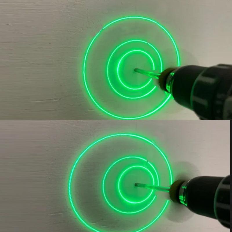 It projects a series of circular patterns onto the work surface. indicating the alignment or misalignment of the drill with the work surface. If the patterns are concentric. the drill is straight with the work surface (and perpendicular to it).