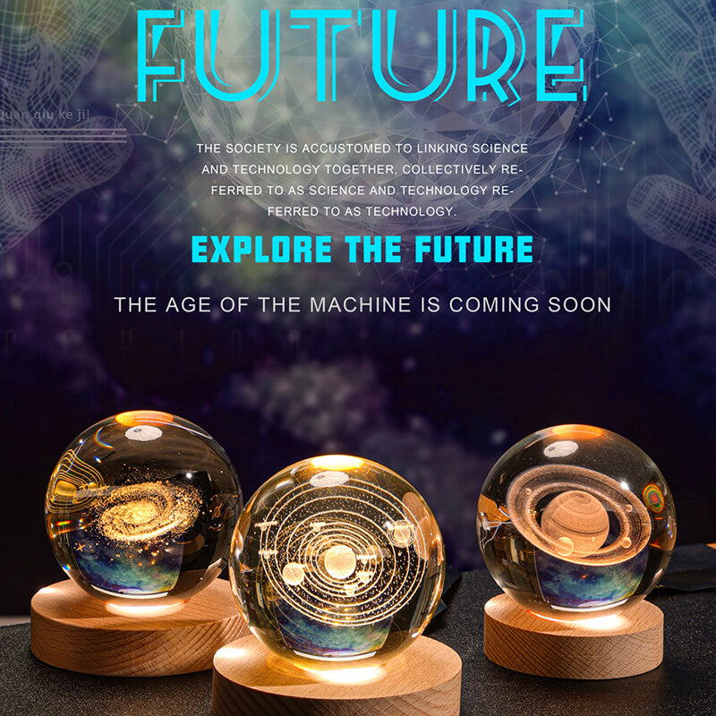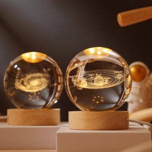 - Premium Crystal Sphere: The lamp features a high-clarity crystal ball (6cm in diameter). meticulously crafted to reflect and refract light. creating a stunning illusion of depth and dimension. Inside. a detailed galaxy motif—complete with stars. nebulas. and swirling constellations—is embedded. offering a 360° view of the cosmos.