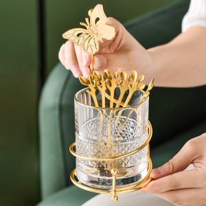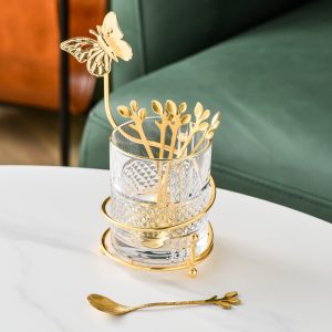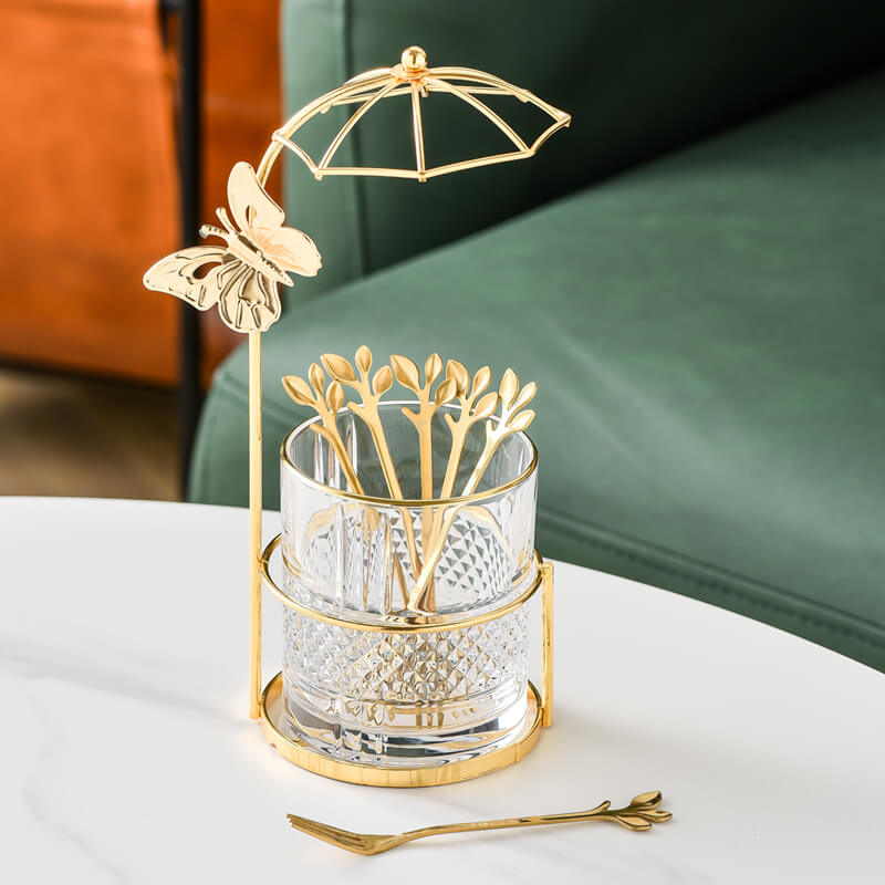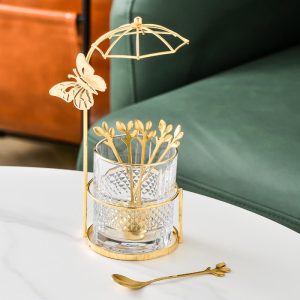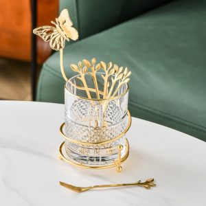 In conclusion. the Lighteme Curve Dessert Fork & Spoon Glass Storage Jar is a wonderful combination of luxury. style. and functionality. Its gold-plated iron frame. clear glass container. and decorative functionality make it a great choice for anyone looking to enhance their kitchen or dining space.