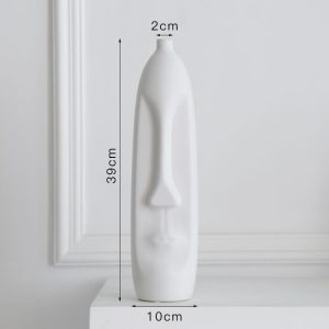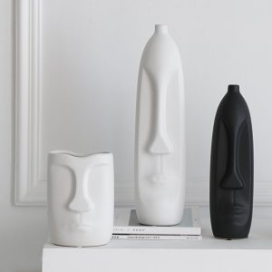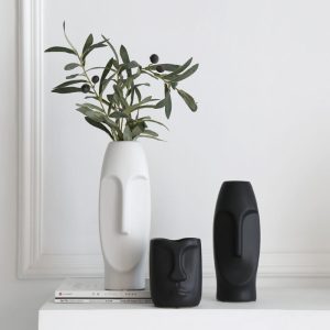 - Dry Flower Arrangement: This Easter Island statue vase is perfect for dry flower arrangements. Its unique design provides a striking backdrop for the dry flowers. enhancing their beauty. The black and white ceramic vase complements the natural textures and colors of the dry flowers. creating a harmonious and visually appealing display. It’s a great way to add a touch of nature and art to the living room.