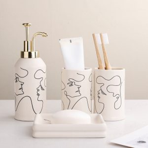 The Lighteme Elegant Line Drawing Bathroom Set is a remarkable collection that seamlessly combines functionality with an artistic touch. As an essential addition to your home’s daily necessities. this four-piece ceramic bathroom set features abstract art patterns that are sure to elevate the style quotient of your bathroom. making your everyday life more aesthetically pleasing.