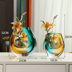 - Aesthetic Appeal: The yellow-green gradient transparent color of the enamel colored glaze gives these vases a visually appealing and unique look. The gradient effect adds depth and dimension. making the vases stand out in any room. Whether used for flower arrangements or as standalone decorative items. the enamel colored glaze creates a sense of light luxury and sophistication. It can complement various decor styles. from modern to bohemian. adding a touch of elegance to the living room.