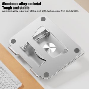 The ultimate solution for a comfortable and efficient work setup. This stand features a 360° rotatable axis that connects to the base. allowing you to swivel your laptop to any angle. It elevates your laptop to your eye level. fixing your posture and reducing neck and back stiffness.