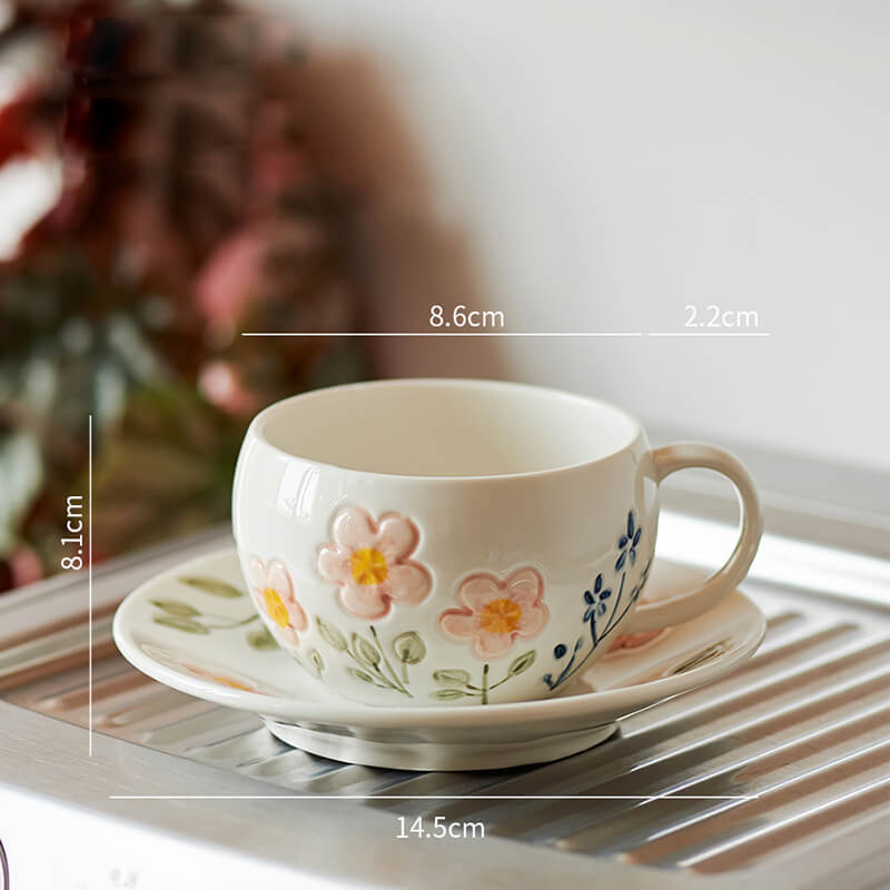 Lighteme Flower Print Ceramic Cup and Saucer – Where every sip blooms with elegance.