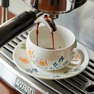 Transform your coffee breaks and tea rituals into moments of serene elegance with the Lighteme Flower Print Ceramic Cup and Saucer. Adorned with hand-painted floral artistry. this set infuses your table with romance and sophistication. blending timeless charm with everyday practicality.