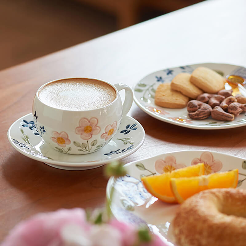 Hand-Painted Floral Artistry: Delicate. intricate flower prints grace each piece. evoking the tranquility of a blooming garden and adding a touch of nature’s beauty to your table.