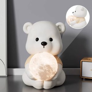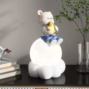 - Adult Spaces: Add a touch of whimsy to minimalist or Scandinavian-inspired rooms—the white resin complements neutral color schemes. while the bear’s charm adds a playful contrast.