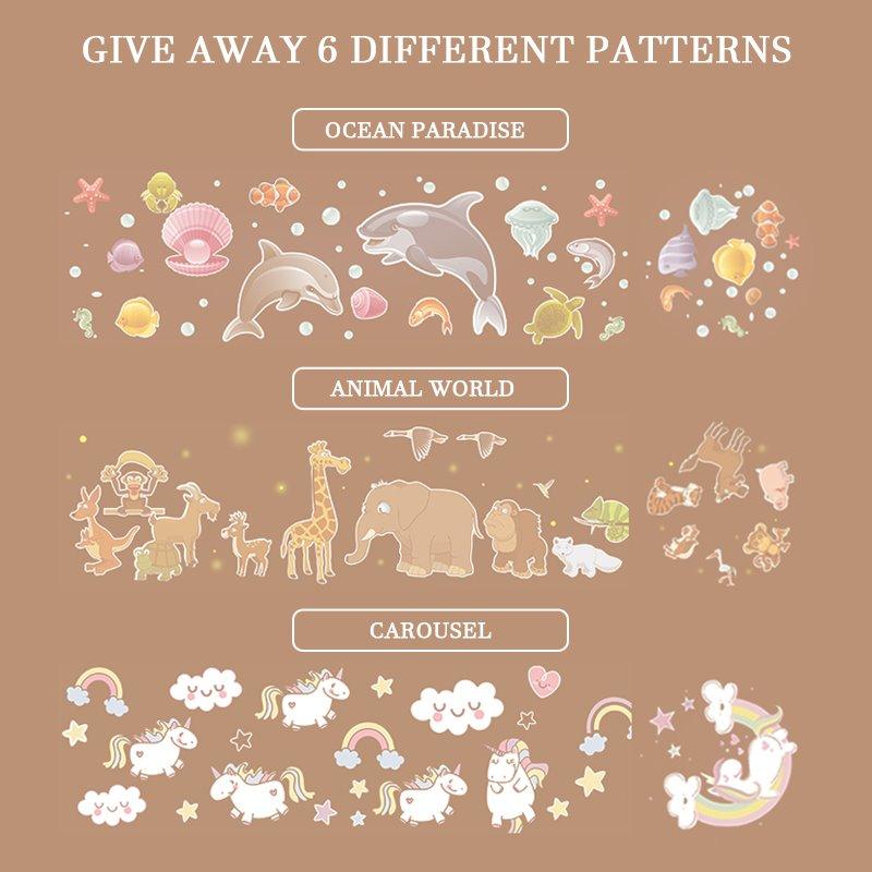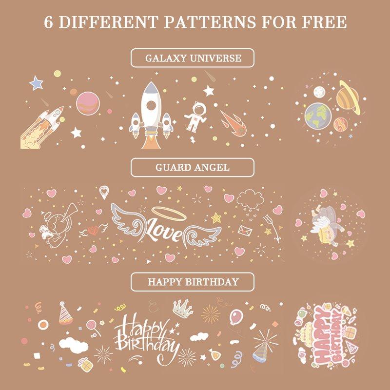 6 Different Films. switch lighting effects at will: The starry night light projects Magical Starry universe. Guardian angel. Birthday greetings. ocean park. animal world. carousel around a room. thereby transforming the room into a relaxing environment at night. It gives your kids and wife comfort and a feeling of relaxation at night while allowing you to enjoy a romantic moment with your partner.