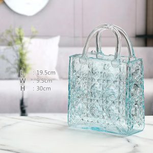 - Enhancing the Space: This handbag glass vase can significantly enhance the ambiance of the space. Its unique design and glass material create a sense of elegance and luxury. It can be placed in different rooms. such as the living room. bedroom. or dining room. to add a touch of sophistication. The vase’s ability to hold flowers or other decorative elements makes it a valuable decor item that can transform the look of a room.