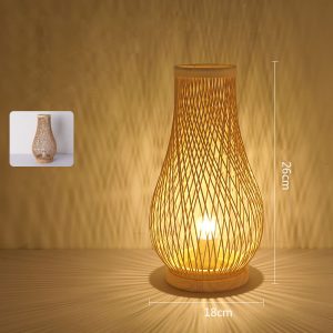 - Natural Textural Beauty: The lamp is meticulously handwoven from premium bamboo strips. showcasing the material’s innate grain and organic patterns. The open-weave design allows light to filter through. creating a play of shadows that mimic the dappled effect of sunlight through foliage.
