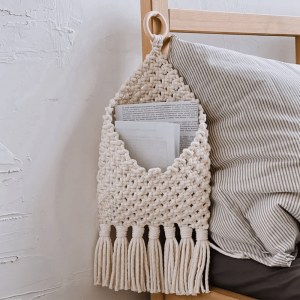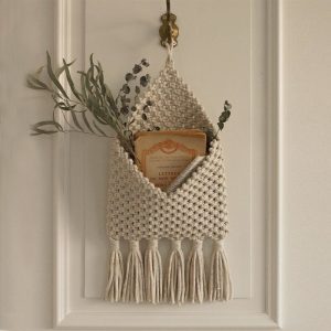 - Durable Build: Cotton is a sturdy material. and when handwoven. it forms a durable structure for the storage bag. This ensures that the wall hanging can withstand the weight of items stored inside and the test of time. maintaining its shape and integrity.