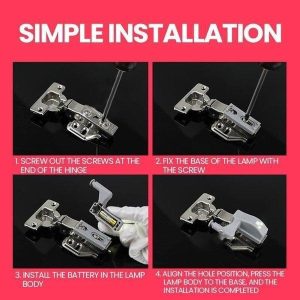 ✔ Effortless Installation: Say goodbye to complex installations. Lighteme easily fits hinges as shown in the picture. Simply screw off the hinge’s screw. mount the LED light base. and you’re ready to go!