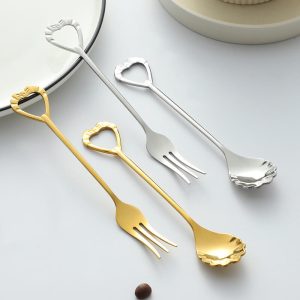 Lighteme Hollow Heart Shaped Dessert Spoon & Fork