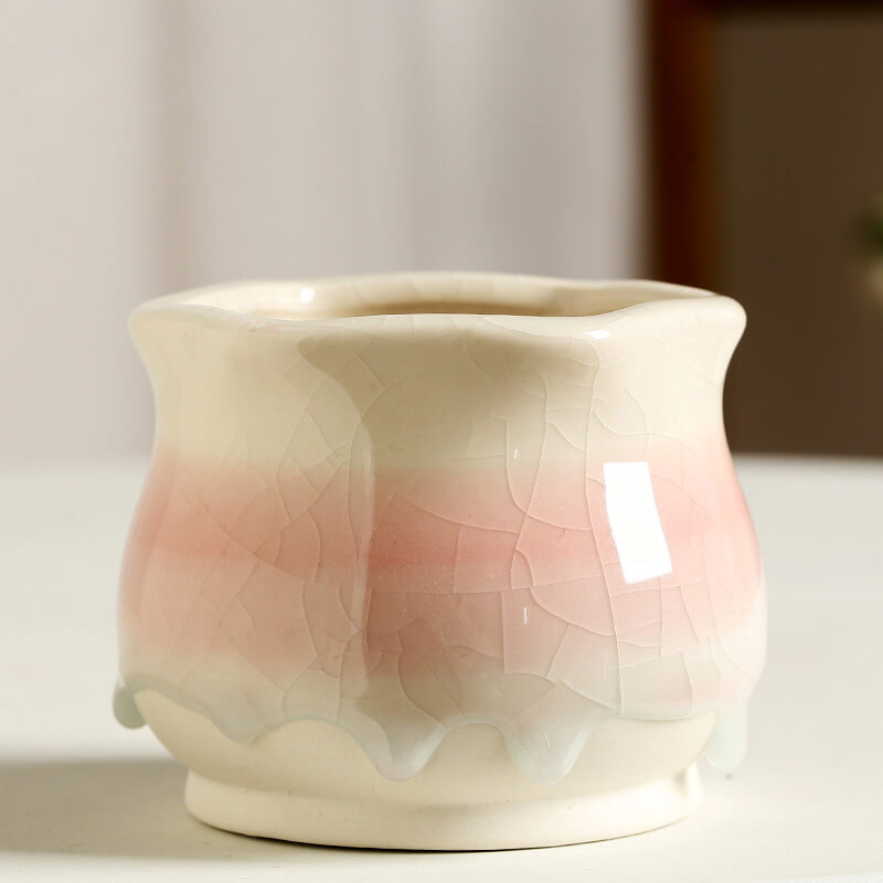 - Home Decor Enhancement: This ice-cracked glazed ceramic vase can be placed anywhere in the home to add a touch of brilliance. Its cute and unique design makes it suitable for various rooms. such as the living room. bedroom. or even the bathroom. It can be used as a decorative accent on a coffee table. a sideboard. or a windowsill. The vase’s size allows it to fit in different spaces. making it a versatile decor piece that can enhance the overall ambiance of the home.