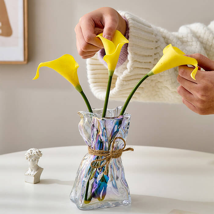 - Flower Arrangement: This irregular glass vase is perfect for creating artistic flower arrangements. The unique shape allows for creative and eye-catching displays. making it a great choice for those who love to showcase their floral arrangements. You can use it to display a variety of flowers. from simple single stems to more elaborate bouquets. The vase’s design enhances the beauty of the flowers. creating a harmonious and artistic composition.